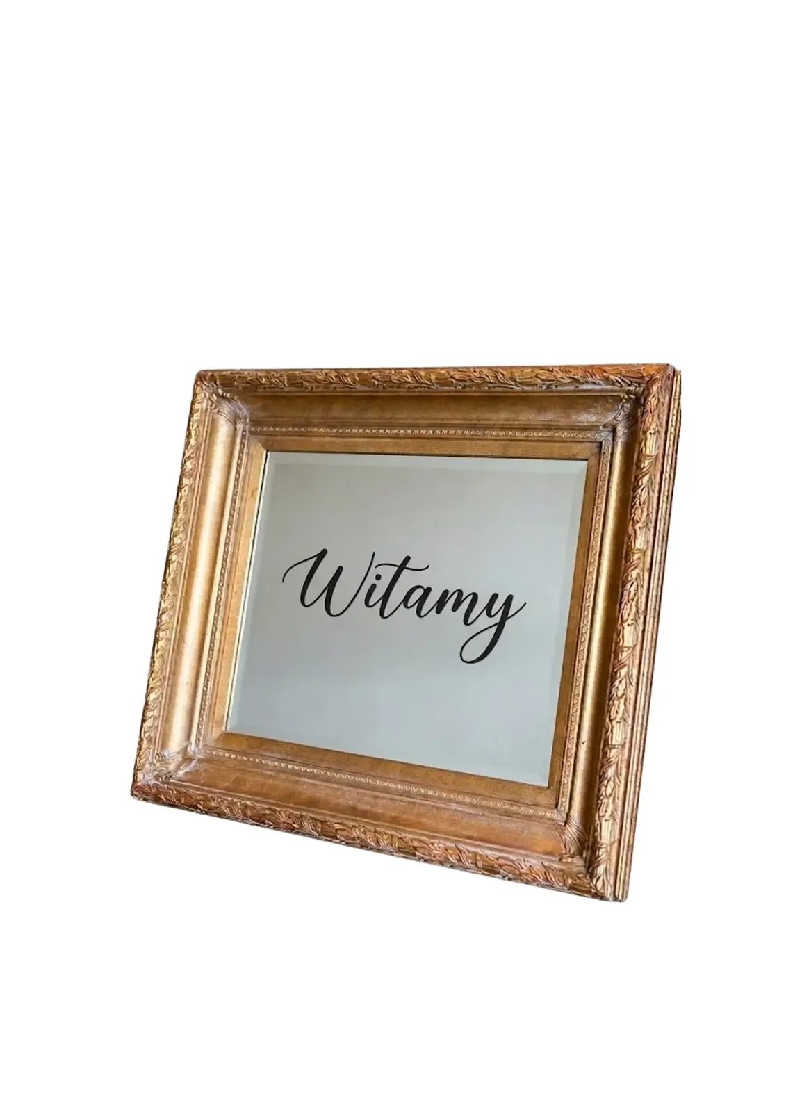Oferta obejmuje wynajem lustra ze złotą ramą, z napisem Witamy Wysyłka niemożliwa, ze względu na możliwość potłuczenia lustra. Preferujemy odbiór osobisty.
